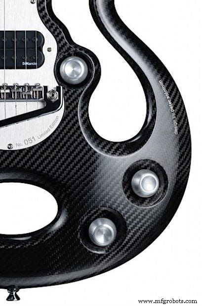 La guitare entière est un corps unique où le matériel supplémentaire est retiré. Avec l'utilisation de fibre de carbone, la guitare ne peut pas être cassée, alors ne vous attendez pas à la casser après votre concert. La fibre de carbone ajoute également une gamme harmonique plus large et est très mince et légère. Les 100 premières guitares sont une édition limitée et uniquement disponibles via XOX Audio Tools. Attendez-vous à payer environ 2 800 $. Voici une vidéo que j'ai trouvée de la guitare utilisée :